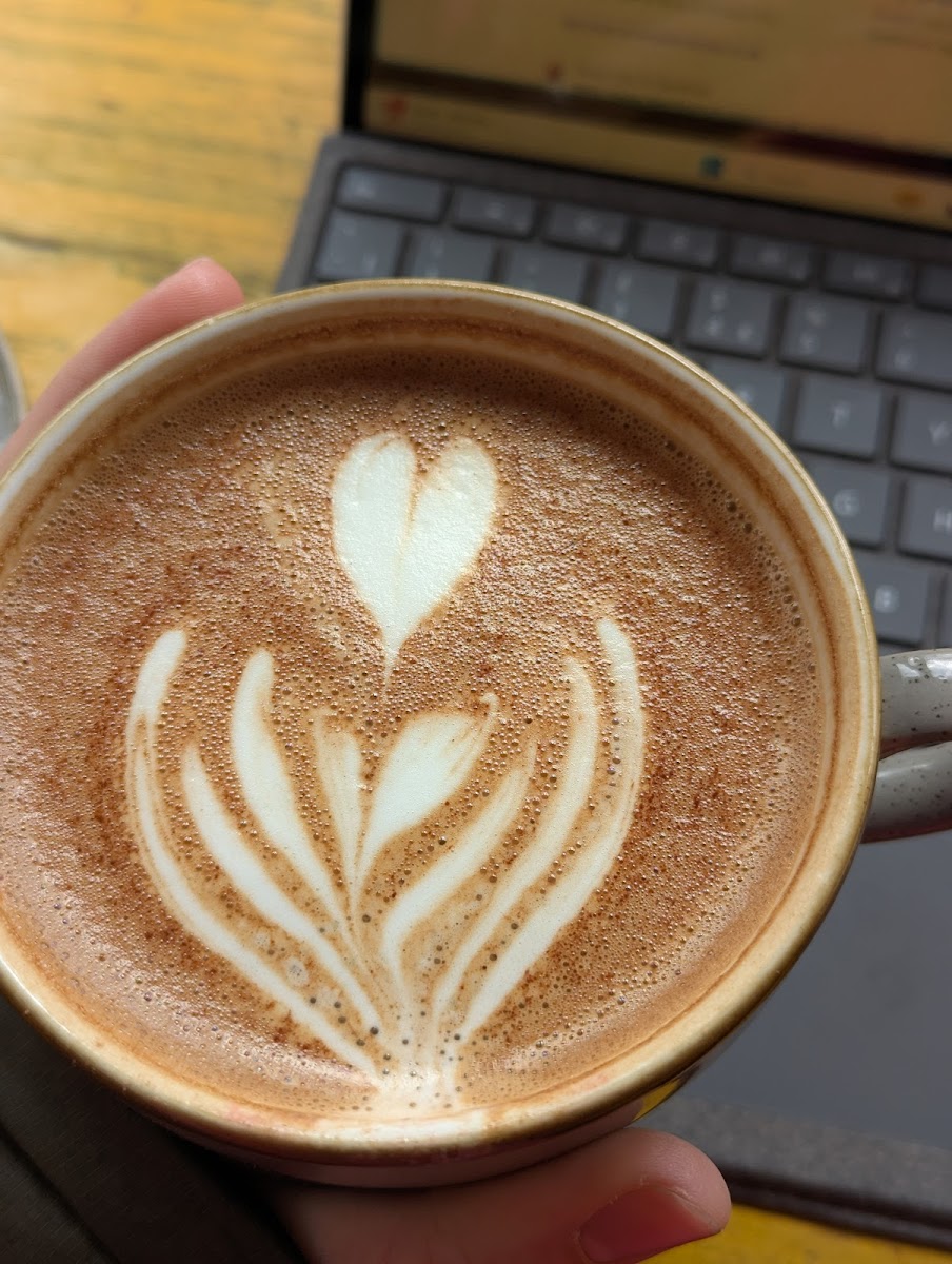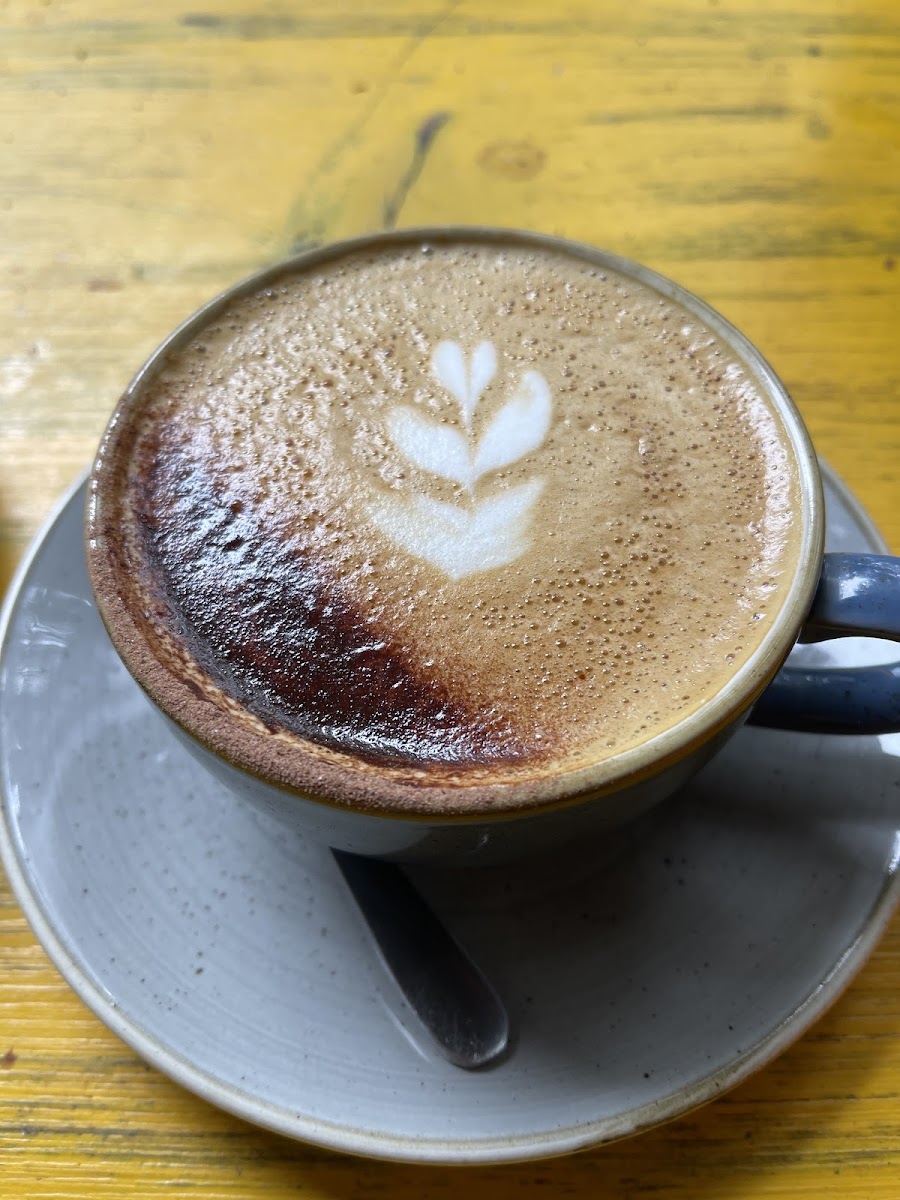 Since I've started freelancing I've got into the habit of starting my working day with a coffee here, and what a gem of a place it is! The coffee is excellent, the food is delicious and generous (the huge bakewell/carrot cake/pastrami toastie/chicken pesto focaccia are all top notch), and the staff are SO lovely - chatty, happy to help, and good vibes all round. It feels like a real community hub - groups of mums with kids and prams, large school groups, couples with lively dogs, etc - and, despite being incredibly busy at lunch time, the service doesn't falter. Everyone is made to feel welcome by the staff - I noticed the staff take great care accommodating big groups/kids/dogs/elderly. I really can't fault the place - thank you