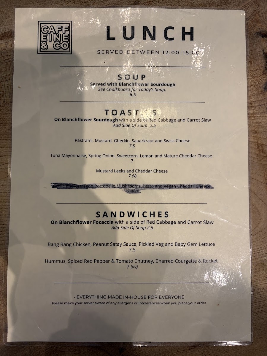 Caffeine & Co Longford Park Menu